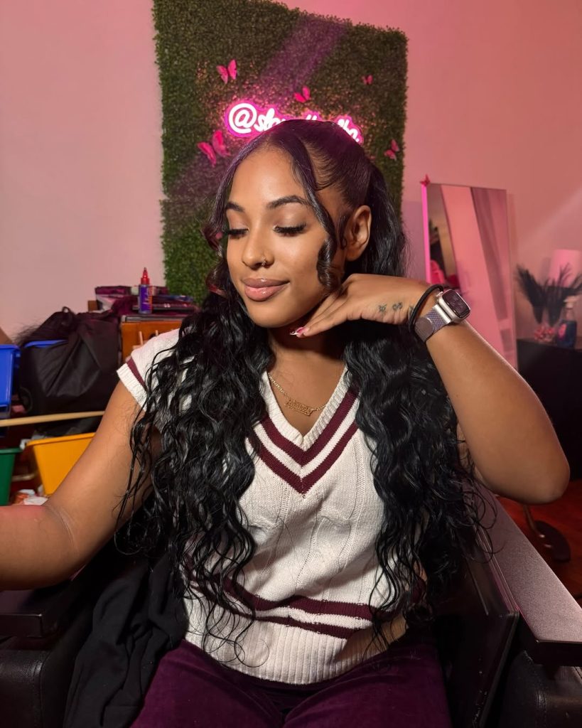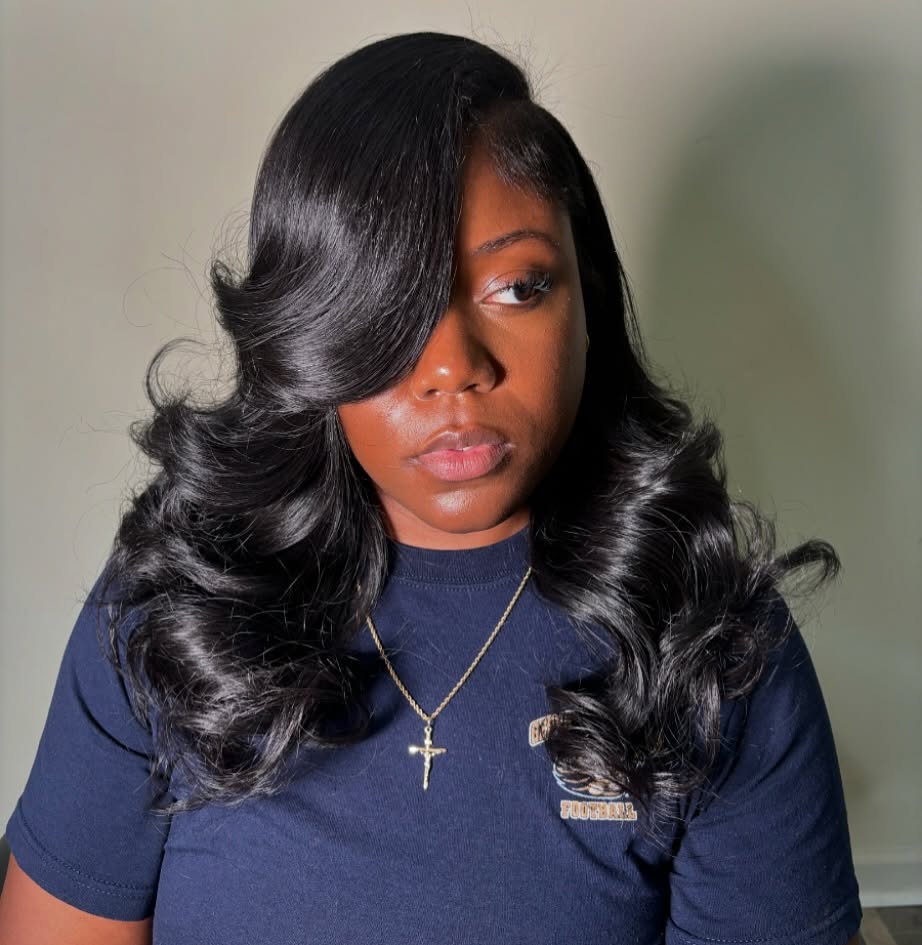 This look is ideal for women who love body wave or deep wave textures and want something that doesn’t require much styling. Just fluff and go—this style thrives on natural movement. It’s especially flattering on oval and round face shapes, giving balance and framing without overwhelming your features.