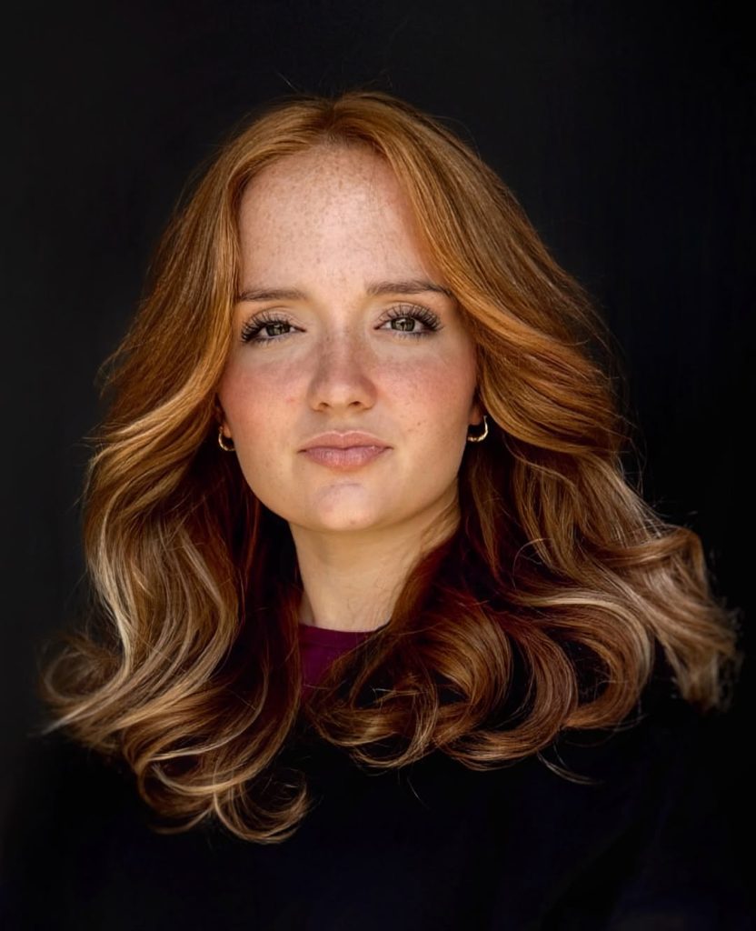 This auburn look feels playful and modern, with tousled waves that show off the golden blonde threads running through. The warmth of the auburn and the brightness of the blonde combine for a youthful, sun-kissed effect that looks natural yet elevated. It’s relaxed, a little boho, and perfect for women who like their style to feel effortless.