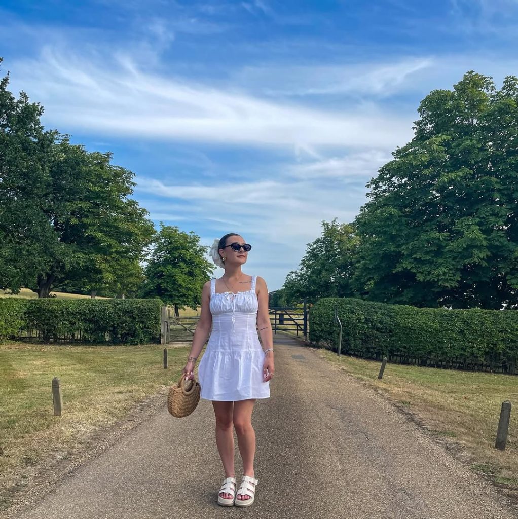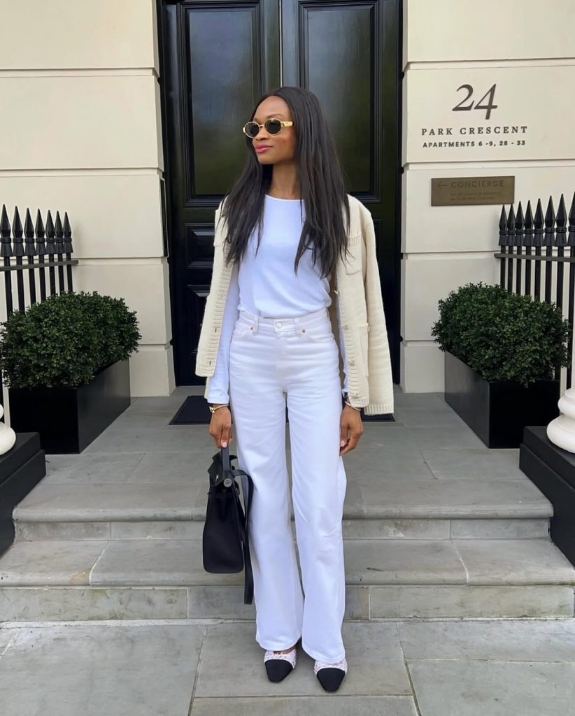 This outfit feels effortlessly Chic and is perfect for a sunny Sunday brunch with nature. The clean white silhouette reflects light beautifully, making it ideal for warm, open landscapes or garden cafés. It’s polished but still relaxed—a lovely balance between Simple and feminine.