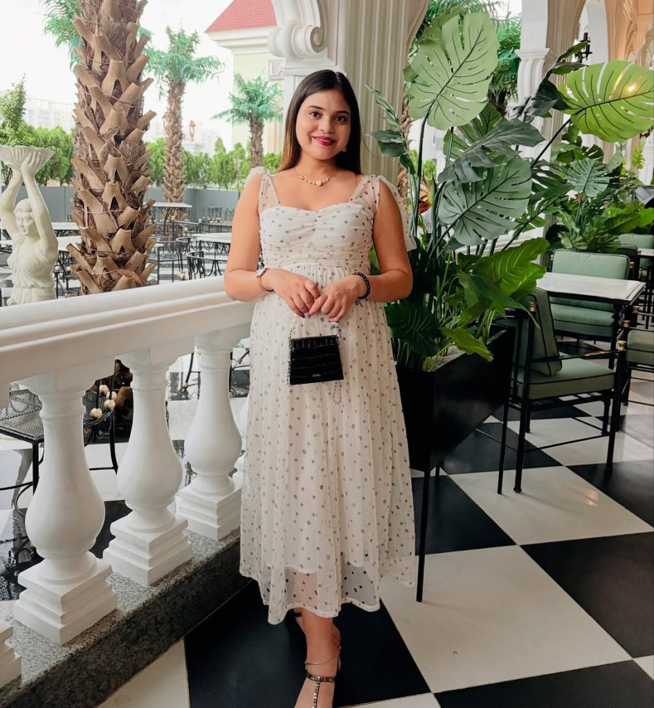 This silhouette feels more Classy and slightly fancy—perfect for upscale hotel brunches or terrace restaurants. The longer hemline adds sophistication, while the delicate fabric keeps it light and breathable.