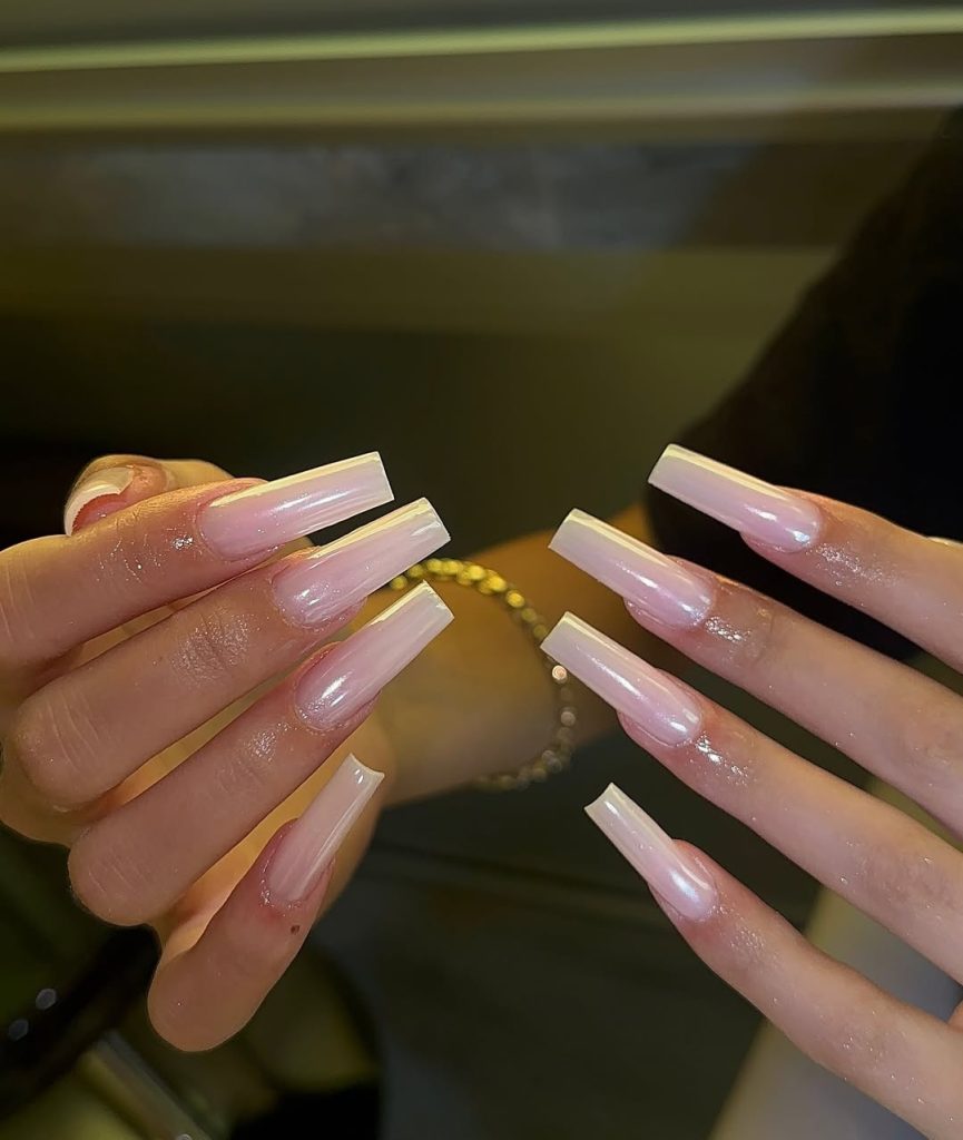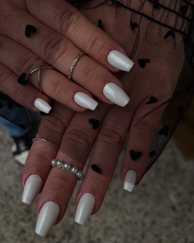 Coffin acrylic nails like this are perfect for nights out, parties, or events where your manicure should double as an accessory. The white chrome finish keeps them sophisticated, balancing the bold length with a pearly softness. They’ll require regular salon upkeep, but the payoff is worth it.