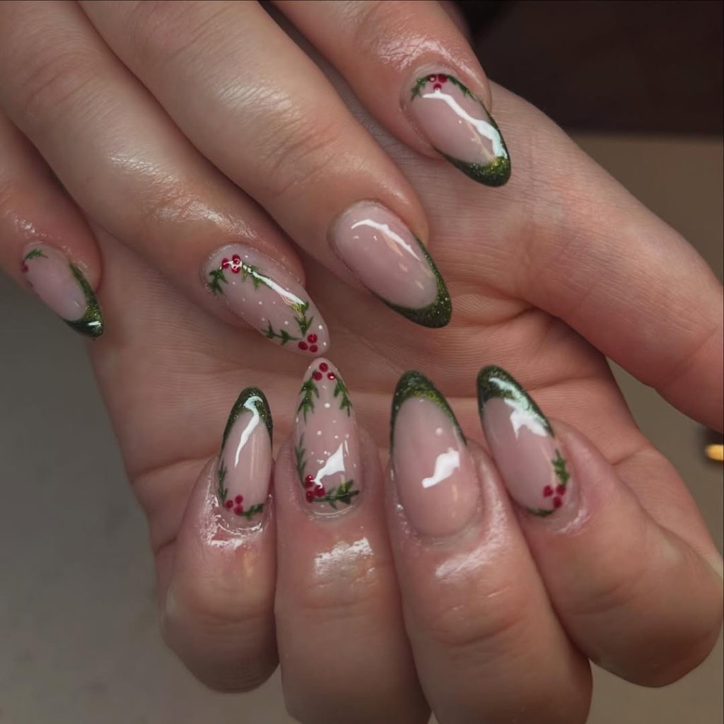 13. Holly-&-Green-French-Almond-Christmas-Nails