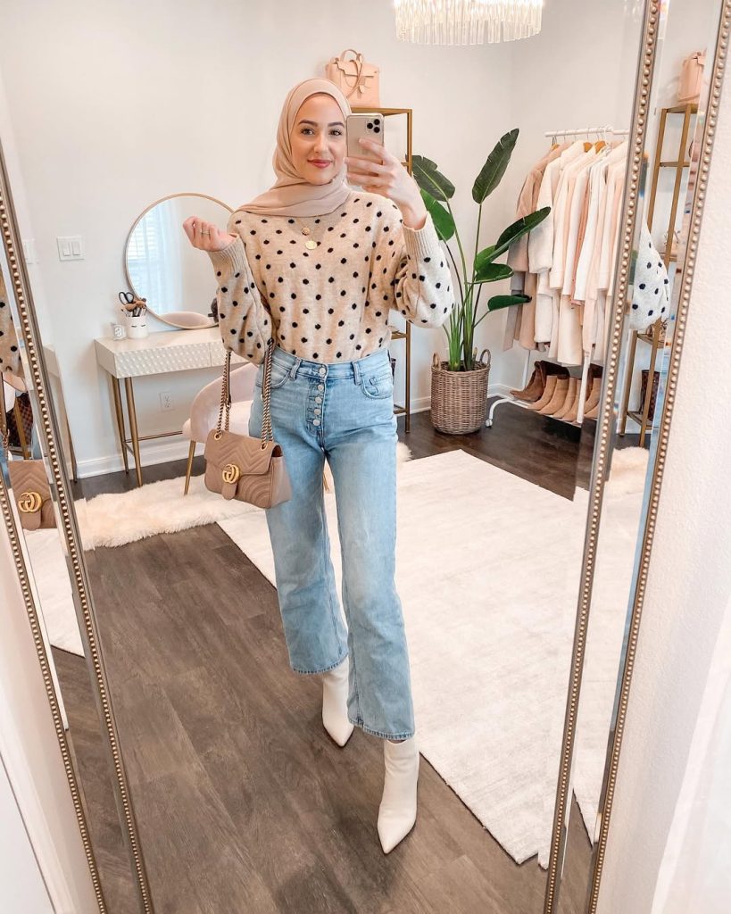 1. Polka-Dot Knit & Denim Balance