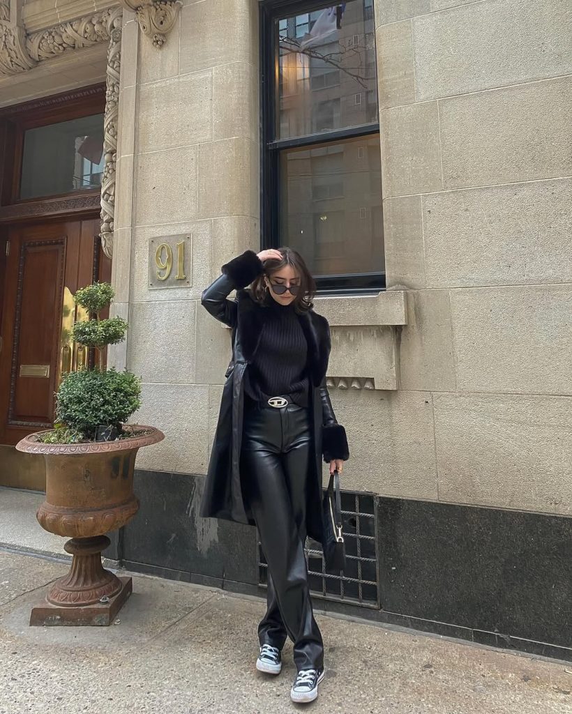Monochrome takes on new power in this sharply styled cold-spring outfit. Sleek, urban, and quietly bold, it feels made for NYC sidewalks and late afternoons that stretch into evening.
