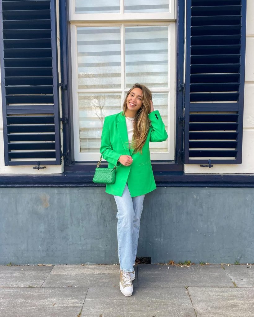 4. Green Blazer Energy for Chilly Spring Days