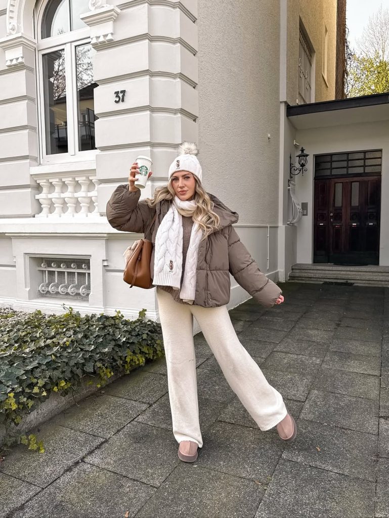 This is the quintessential ootd for mornings filled with errands, coffee runs, or meeting friends on chilly afternoons. A beanie in cream or cocoa would elevate it further without disrupting the palette. Avoid overly formal footwear; the charm lies in its “effortlessly warm” energy. Perfect for readers searching for simple everyday cold-weather inspiration that doesn’t feel overthought.