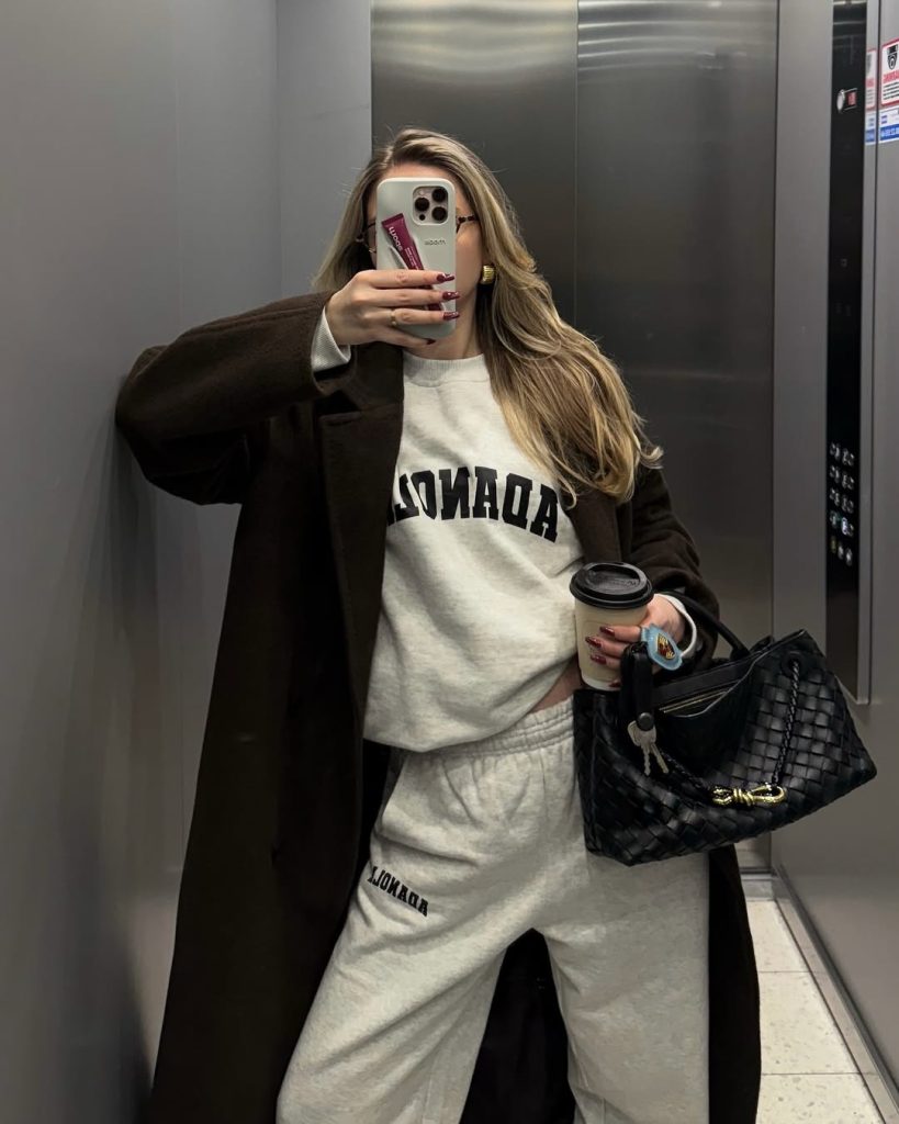 Part athleisure, part street-smart layering, this outfit shows how practical pieces can still offer a refined silhouette—especially during busy, chilly mornings.