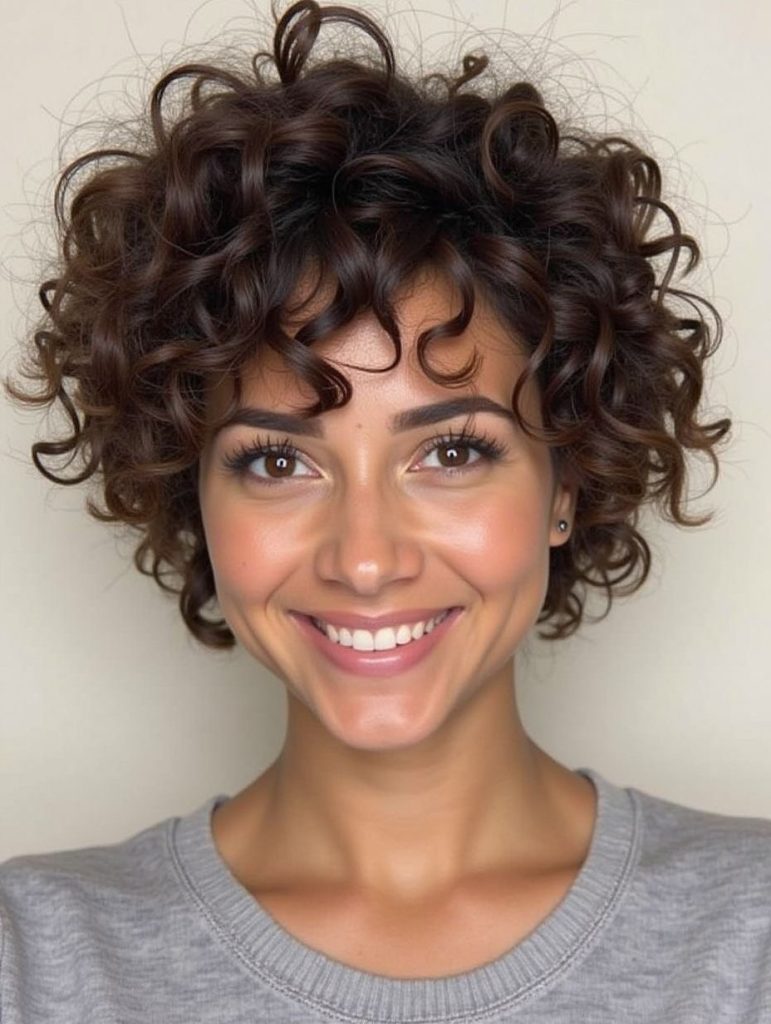 For women with thick curls, this cut is especially flattering because the layers prevent heaviness and allow each curl to shine. Styling is easy—just finger-comb with a curl mousse or cream to maintain bounce. It’s a fresh, timeless take on short curls that never fails to feel uplifting.
