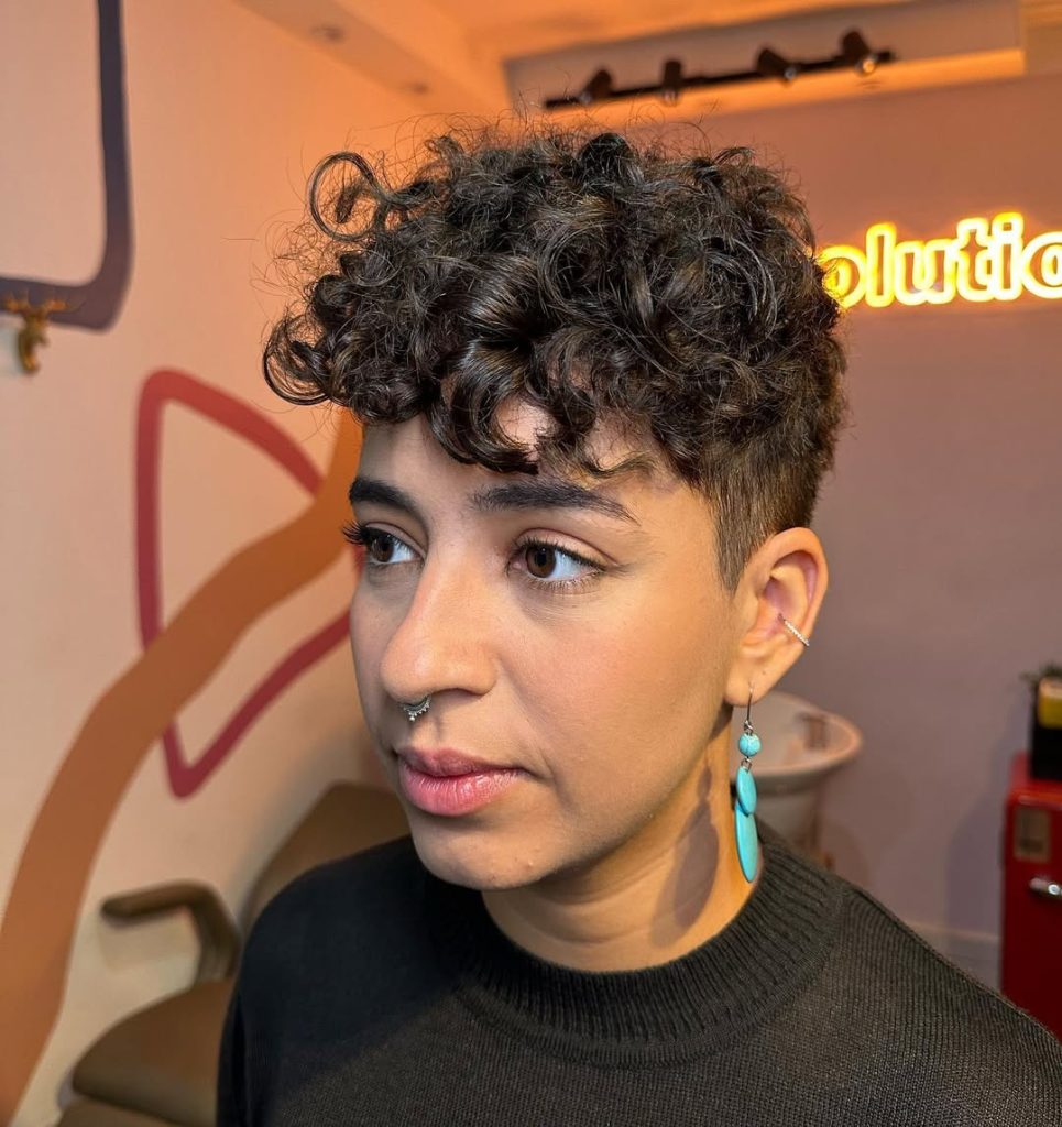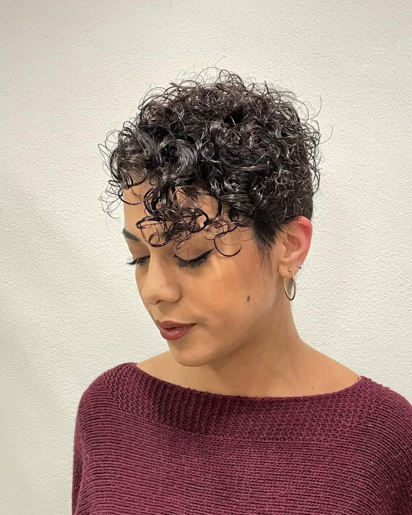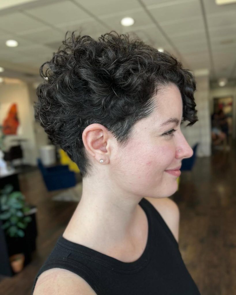 There’s an effortless beauty in keeping things natural, and this curly pixie proves it. The short, tapered sides blend seamlessly into the soft curls on top, creating a balanced and understated look. It radiates a sense of ease and authenticity, making it the perfect choice for women who love styles that don’t try too hard.