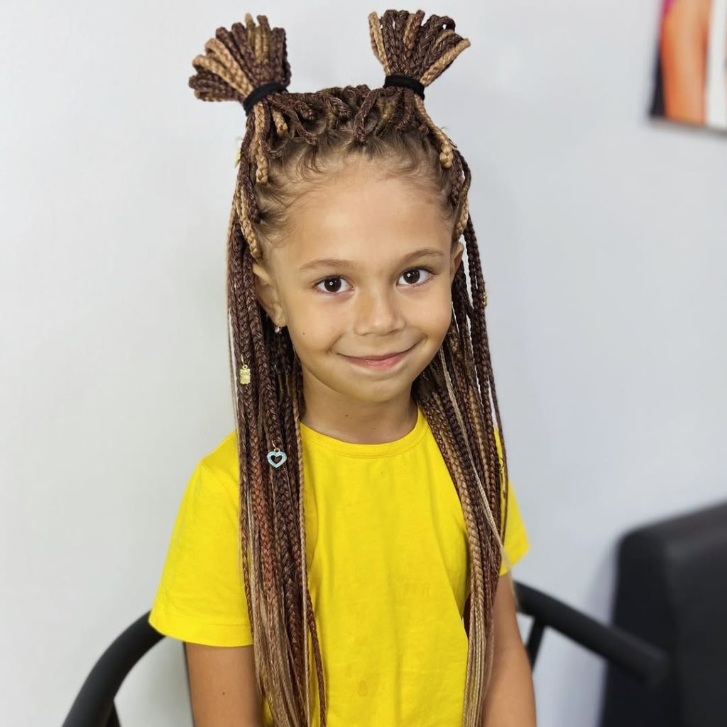 If you’re styling Natural hair or slightly wavy textures, this technique works surprisingly well. It’s a fantastic option for active kids because everything is secured in Ponytails. The key is clean parting and small elastics that won’t snag. This style is especially Easy on busy mornings, and it works well when you want something Simple but visually impressive without committing to full braids.