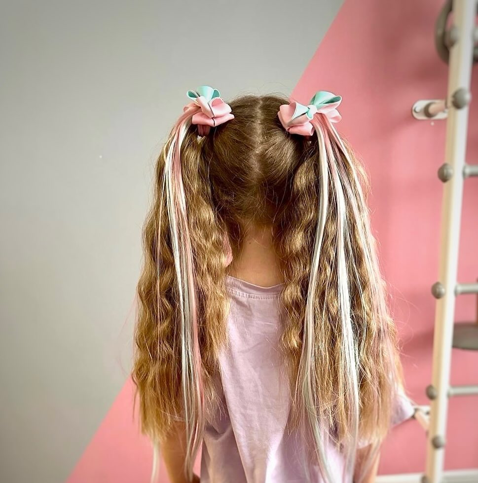 This style is wonderful for natural, light-textured hair. The Ponytails are Easy to secure, and adding ribbon extensions instantly elevates the look. If your child has Thin hair, the ribbons create the illusion of fullness and length. It’s a Simple way to make an everyday style feel holiday-ready.