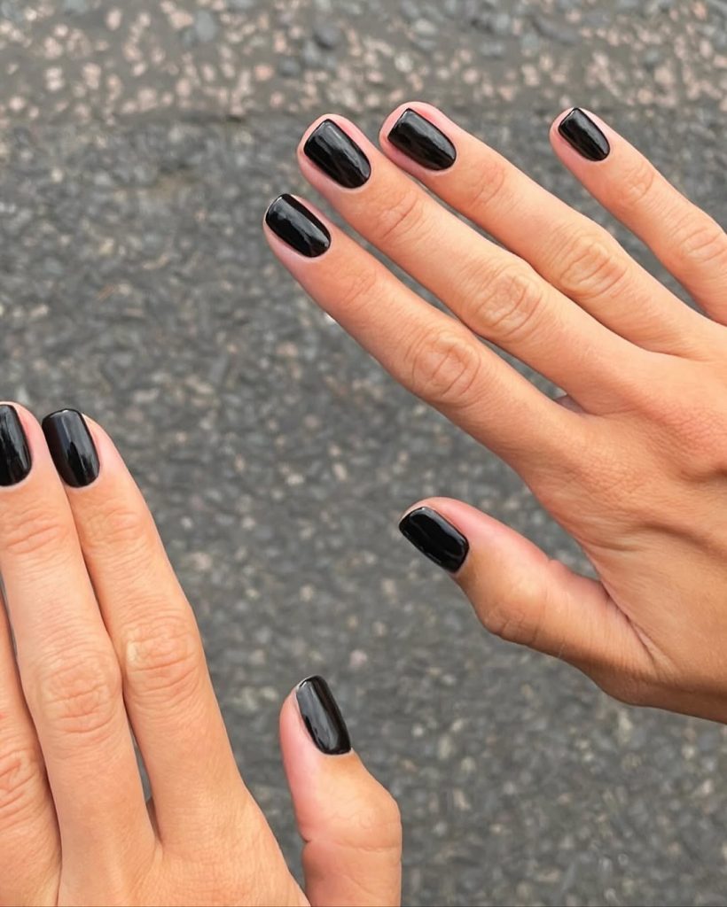 Sometimes the most powerful statement is the simplest one. These Short, glossy, black nails are timeless, clean, and undeniably chic. The high-shine solid finish reflects light beautifully, demonstrating that dark spring nails in 2026 don’t require elaborate art to look stylish.