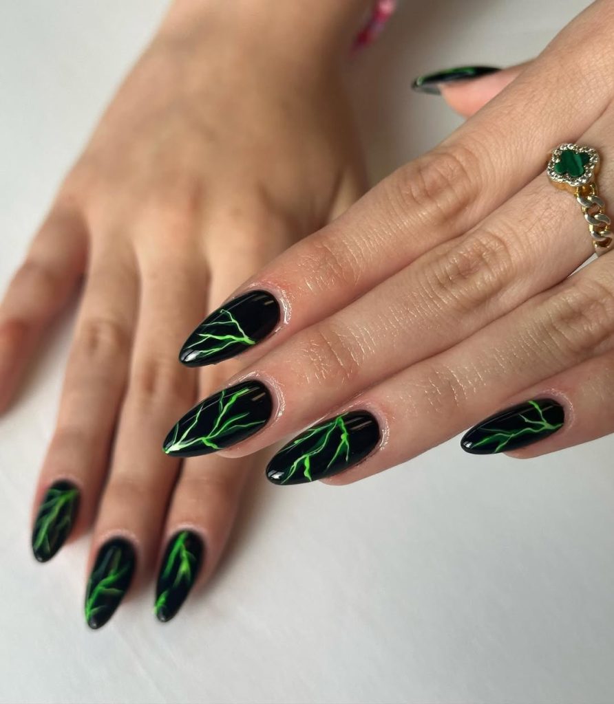 8. Black Almond with Neon Green Lightning Art is a design that exudes energy.