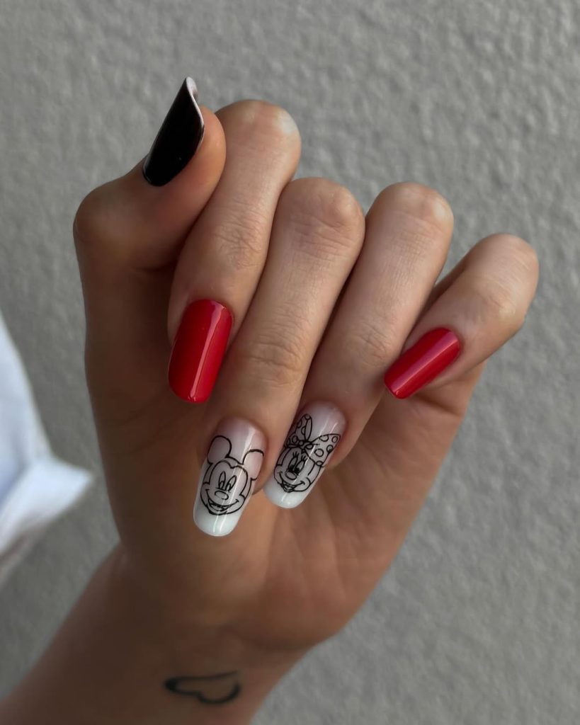 1. Classic Mickey and Minnie Contrast Nails