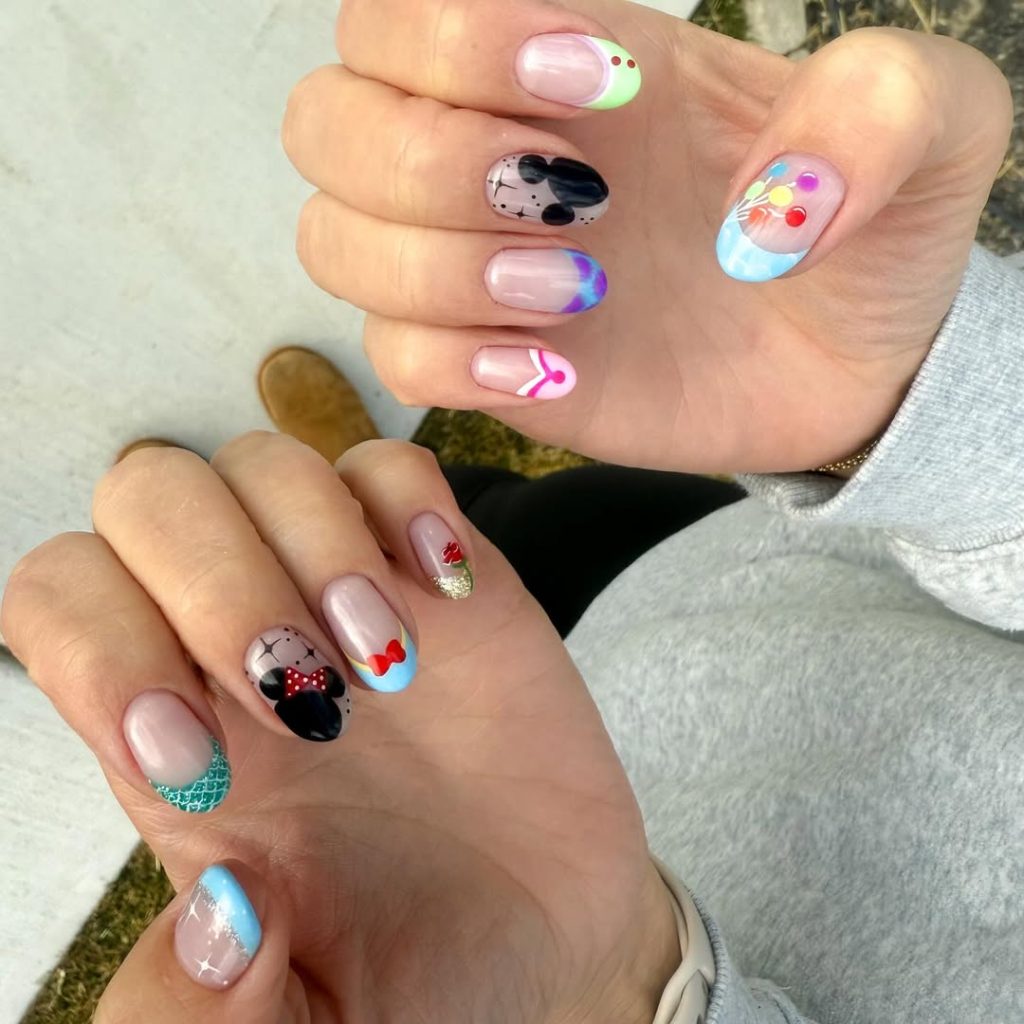 11. Mixed Disney Character Accent Nails
