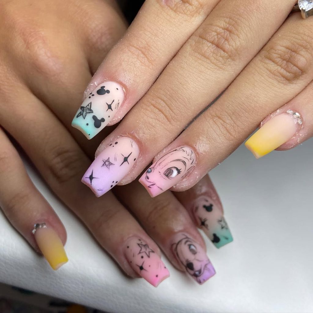 13. Pastel Gradient Disney Character Nails