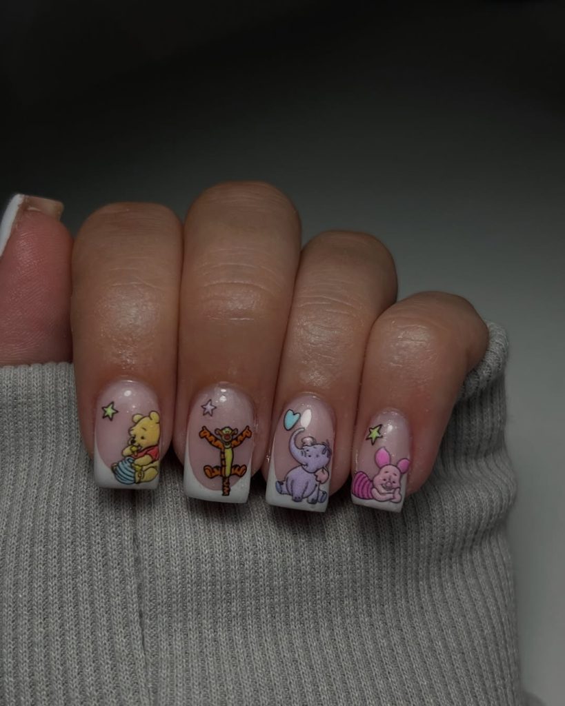 14. Winnie the Pooh Pastel Nails