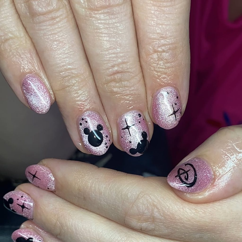 15. Sparkly Pink Mickey Silhouette Nails