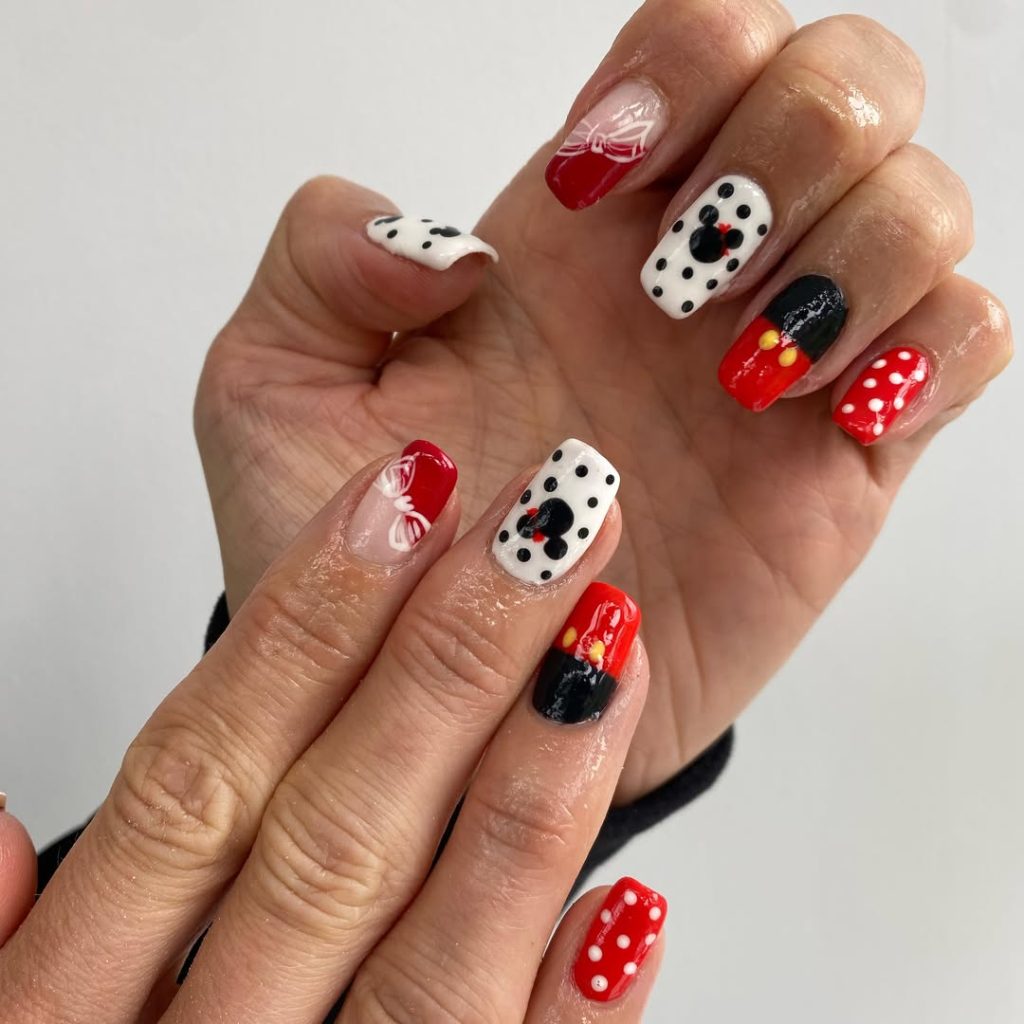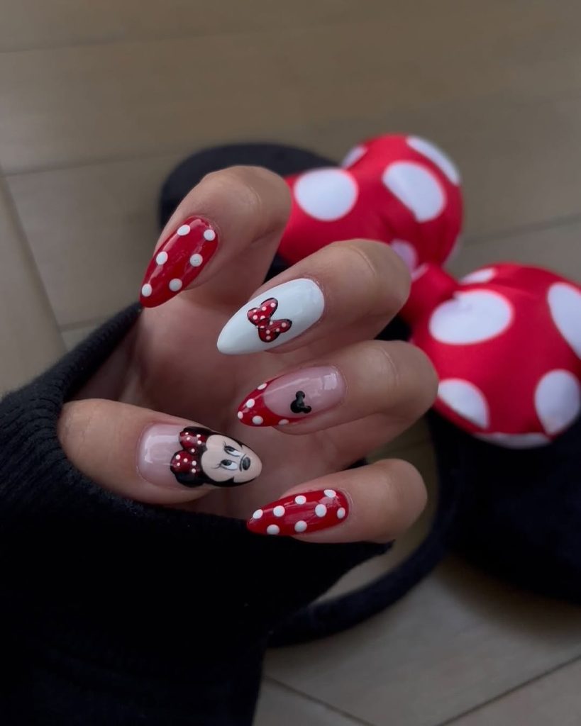 3. Playful Red and Polka Dot Disney Nails