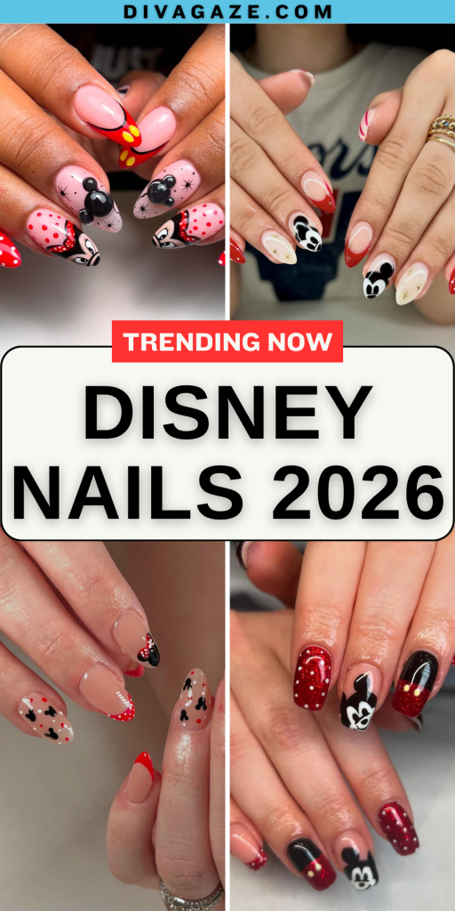 Disney nails make a statement starting with 2026 and somehow giving whimsy to our manicure experiments, placing infinite characters against a new-age nail design backdrop. Consider this your style prescription for any trip to the parks, celebrate occasions, and generally elevate one’s spirits on a mundane day with a sprinkle of magic. Interpreted to include delicate Mickey silhouettes, bold Minnie faces, red French tips, and pastel accents: Basically, your choice of fashion soul. These manicures are as cute and playful as they areversatile, equally apt for daily wear or eminent Disney trips.