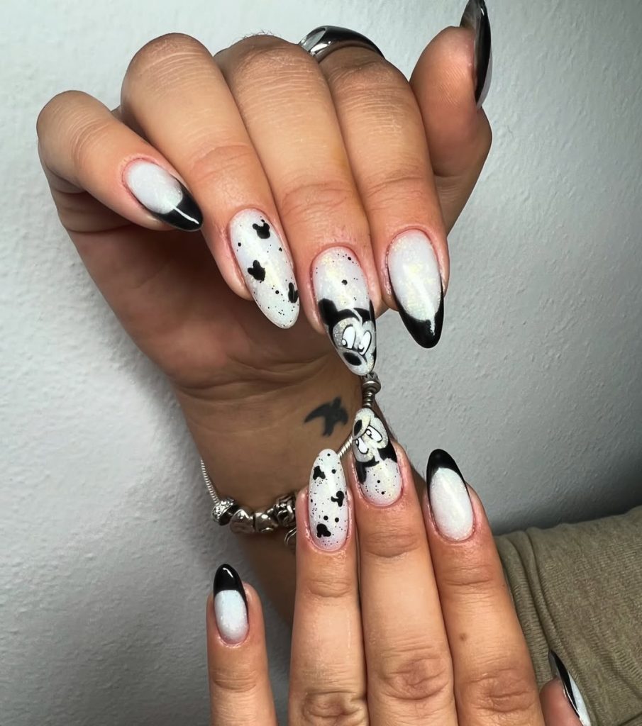 2. Black and White Mickey Art Nails