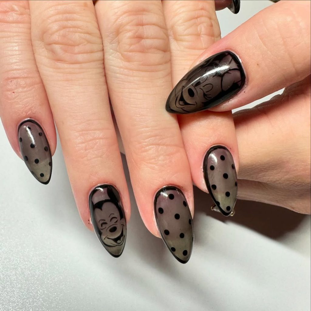 9. Smoky Black Polka Dot Disney Nails