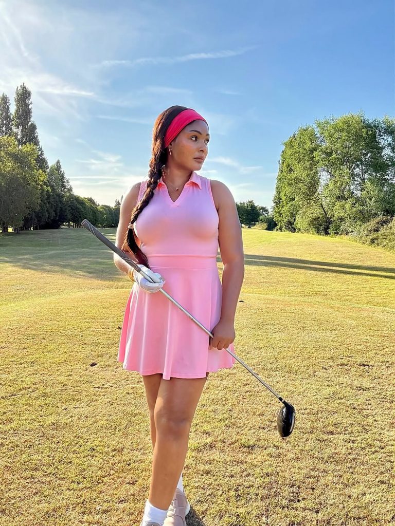 There’s something timeless about a pastel dress that still feels athletic and modern. Add a simple silver necklace or small hoop earrings to heighten the classy touch. This look is perfect for daytime rounds, relaxed tournaments, or a post-game pub lunch. Avoid heavy outerwear—this outfit shines in warm weather and pairs beautifully with soft natural makeup and tousled waves.