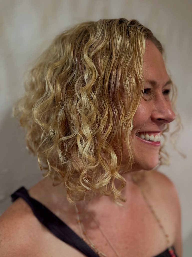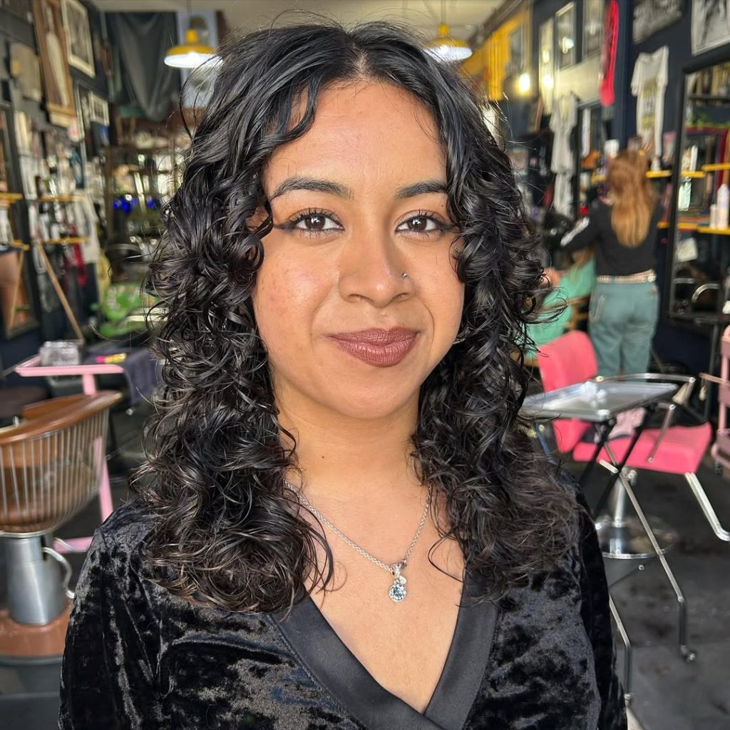 There’s a quiet confidence in this style that really stands out. The curls feel lively and expressive, framing the face with texture and personality. Instead of trying to tame the waves, this haircut celebrates them, allowing the curls to fall naturally and create a soft halo of movement around the head.