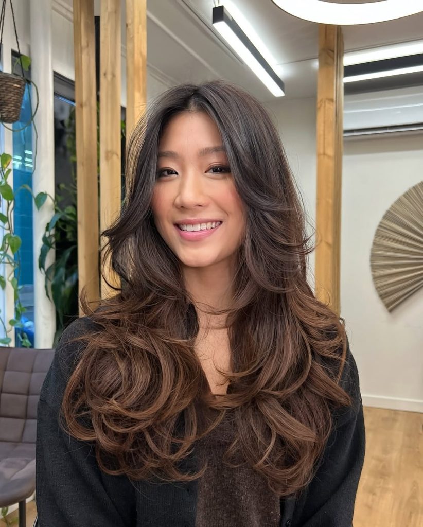 This long layered cut works beautifully for women’s long hairstyles, as it maintains length while removing heaviness through strategic layering. It’s particularly good for thick or naturally wavy hair, which needs shape and flow. With a diffuser or a simple air-drying routine, the layers fall into place easily, making them a surprisingly low-maintenance option for everyday styling.