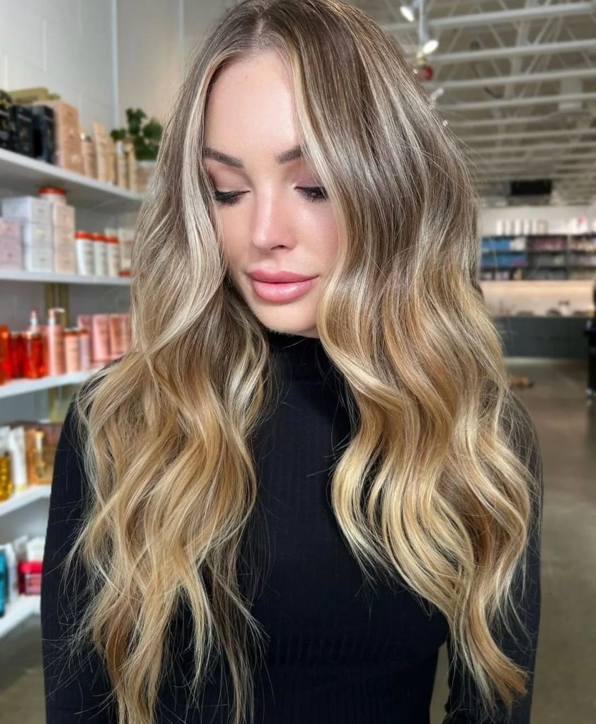 This look is a great fit for women with medium to long hair who want to balance light and dark color without going full blonde. The balayage placement means lower upkeep and a natural grow-out, while a texturizing spray will enhance the movement and keep it looking fresh.
