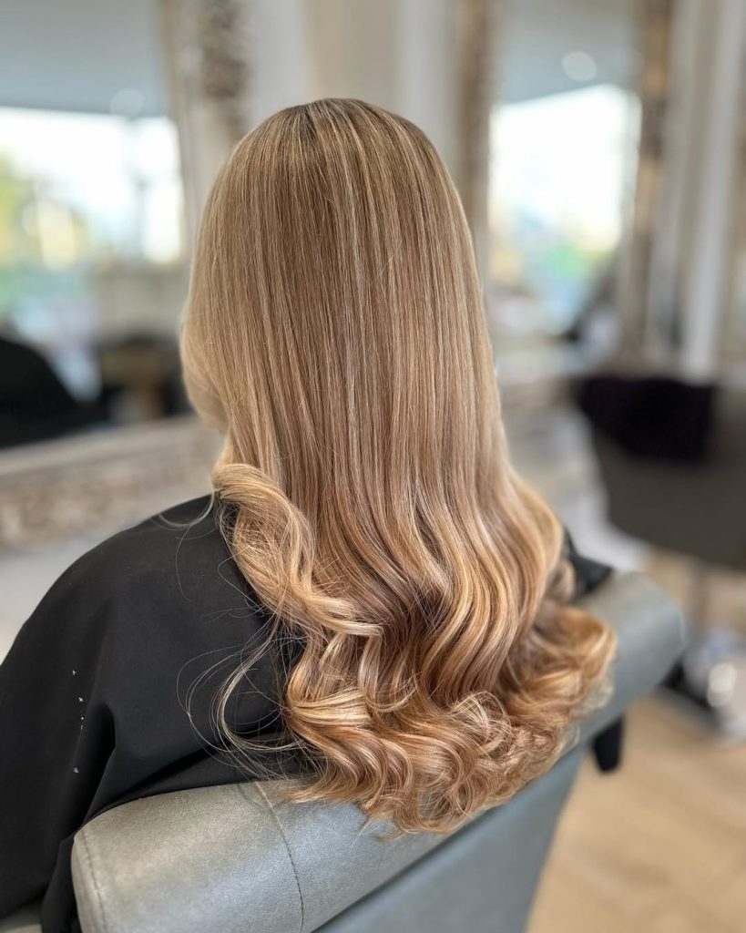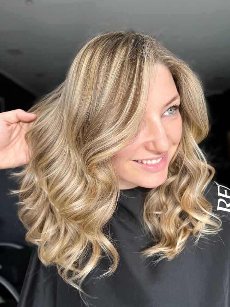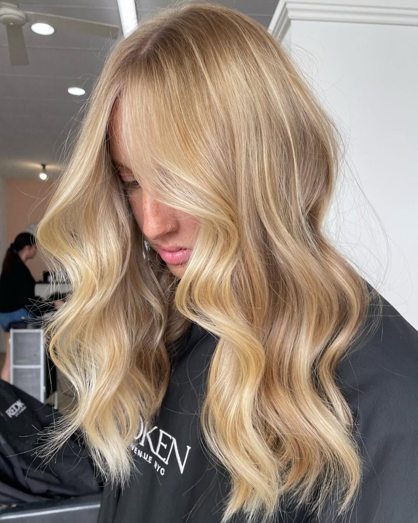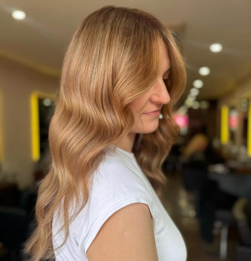 A lighter take on honey blonde, this shade glows with just the right amount of brightness. The soft waves bring the color to life, creating a natural shimmer that feels both youthful and elegant. It’s the kind of inspo that makes you want to book a salon appointment right away.