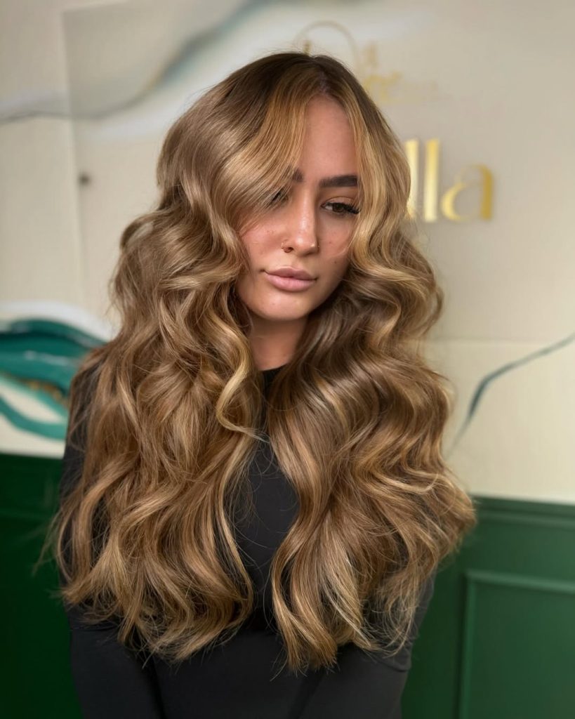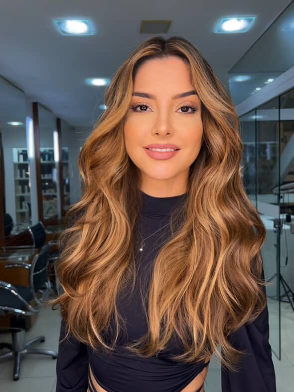 There’s something bold yet soft about these full, cascading honey waves. They feel rich, voluminous, and ultra-feminine, making them the perfect inspo if you want hair that feels both glamorous and wearable. The golden hues melt beautifully into each wave, giving the whole look a sunlit glow.