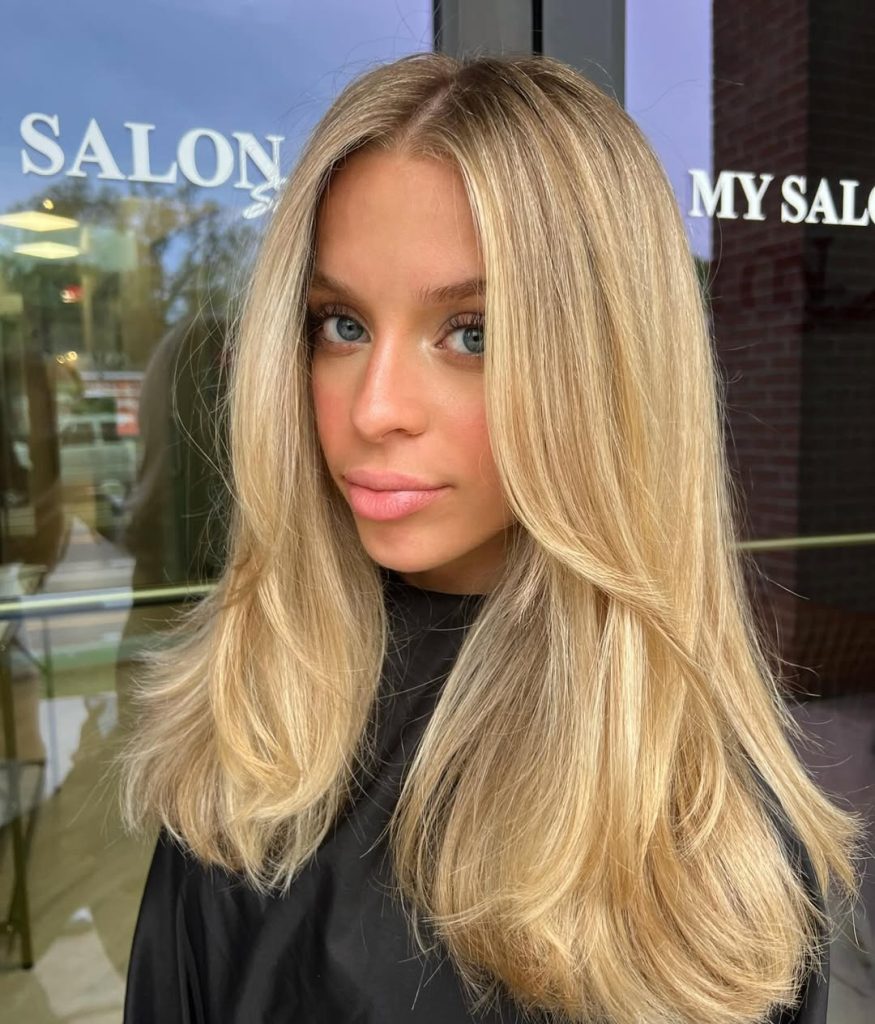 It’s a great match for women with lighter skin tones who want to add warmth to their complexion. For fine or medium textures, this look builds body and dimension with the right dye formula. Maintenance is simple—regular gloss treatments will keep that bright honey shine intact.
