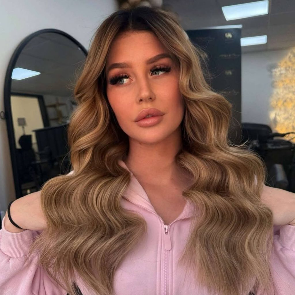 These soft caramel-honey waves are all about richness and warmth. The color sits between blonde and brown, creating a dimensional tone that feels cozy and flattering. With gentle waves, the look radiates softness and sophistication—perfect for anyone wanting a natural yet elevated finish.