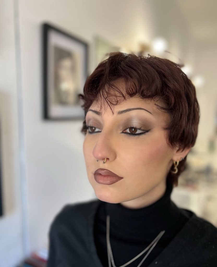 This look leans into the sultry side of 90s glam. The smoky eyes feel deep and expressive, while the glossy brown lips bring everything back to that iconic era of minimal base and statement features. It’s confident, grounded, and effortlessly cool—very much the kind of inspo you’d expect from underground fashion scenes and late-night city energy.