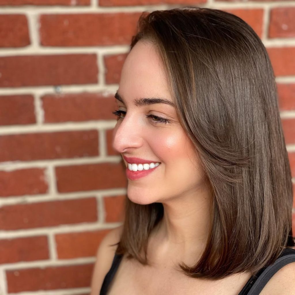 This sleek brunette lob is all about subtle sophistication. The glossy hair softly contours the face and results in an elegant look that seems perfectly polished yet incredibly easy to maintain. It is one look that whispers confidence without shouting about it, best designed for women who are passionate about timeless yet polished beauty.
