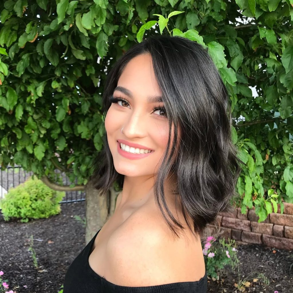 This wavy dark lob adds that edgy vibe to your look. The wavy hair moves effortlessly with the face. In fact, the most striking effect of this hairstyle is that it’s so effortlessly chic and works perfectly with people who are bold and feminine.