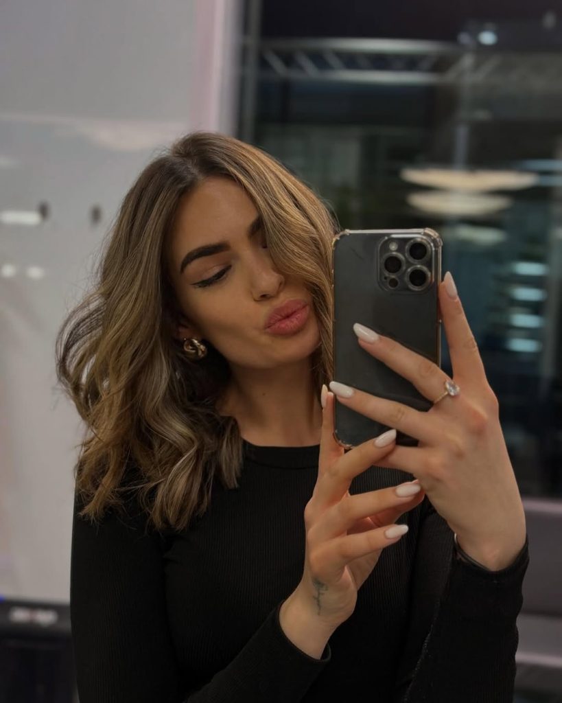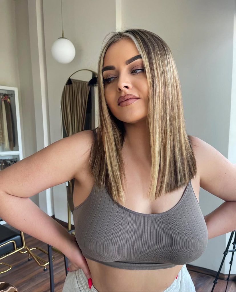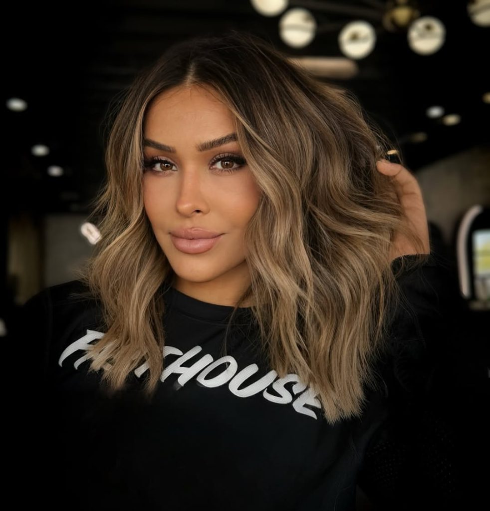 This soft blonde lob shines under any light—literally. The layered, slightly tousled texture gives it a glowing, carefree feel that’s both playful and glamorous. It’s that perfect in-between look that transitions seamlessly from day to night, embodying effortless confidence.