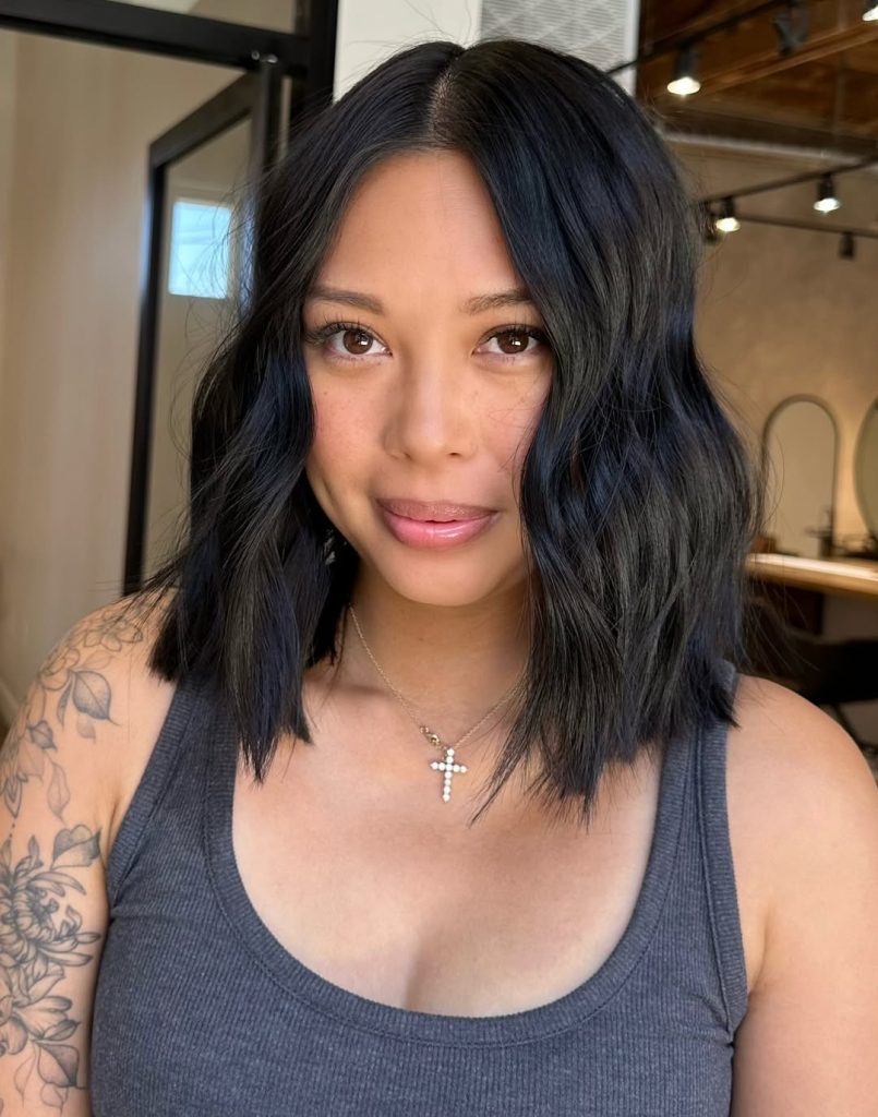 This look is perfect for thick and natural wavy hair and can be achieved with just a curling wand and some salt spray. The best part about this look is that it suits most faces and is ideal for both casual and dressed-up occasions—consider it to be your all-occasion lob look in 2026 that always looks fresh and new.