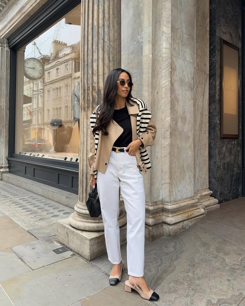 Effortless and polished, this look captures the essence of casual London spring dressing with timeless appeal.