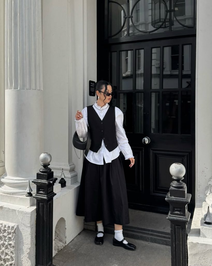 This look shines during casual travel, weekend walks, or café mornings. It’s adaptable across body types and works well with a skirt swap for warmer May afternoons. Avoid over-layering—London spring rewards restraint.