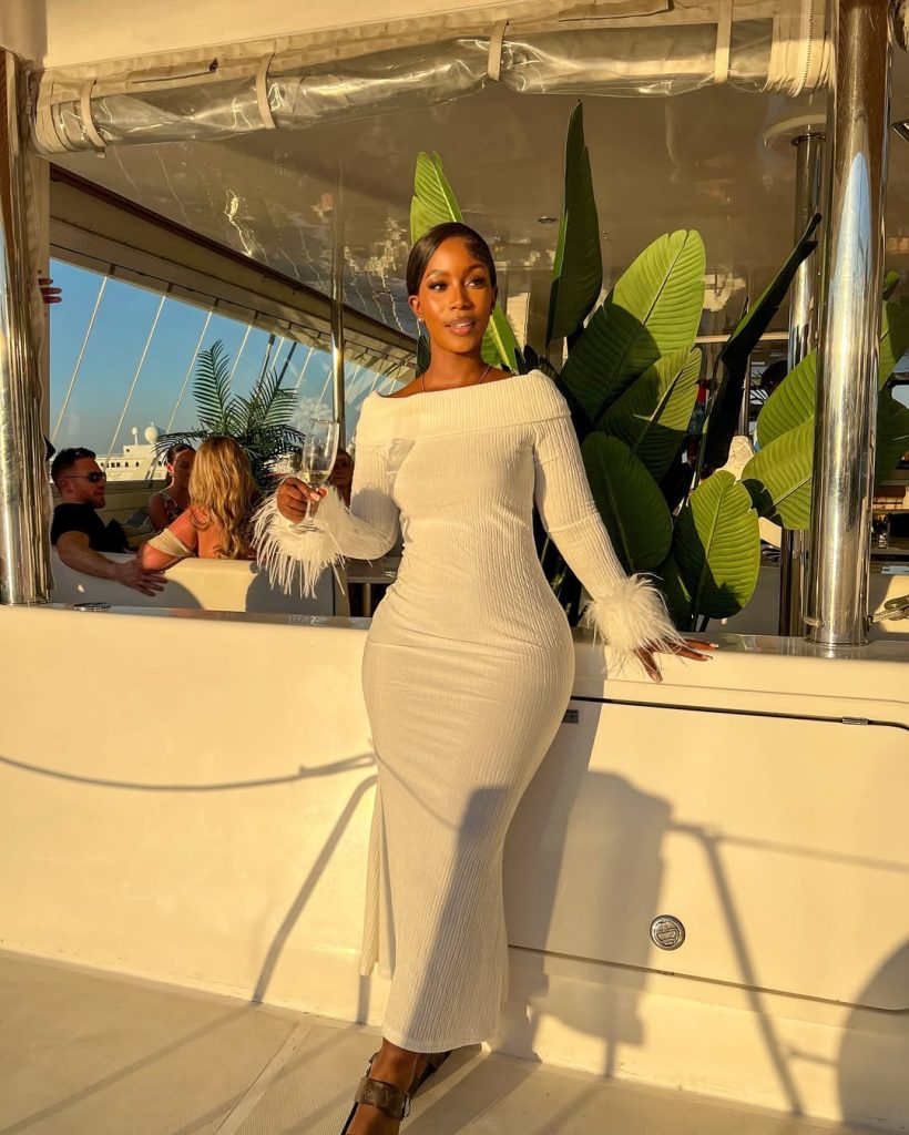This white long-sleeve dress is pure elegance with a touch of modern glamour. The fitted silhouette hugs the body gracefully, while the feather-trimmed cuffs add that unexpected detail that turns a simple design into something unforgettable. It’s refined, luxurious, and effortlessly chic—ideal for evening parties, yacht events, or elegant dinner settings.