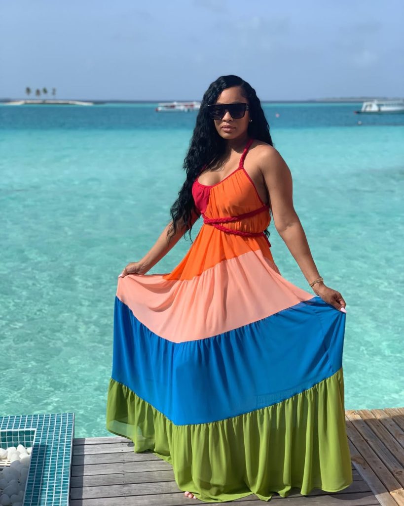 Nothing says casual summer quite like a vibrant, color-block maxi dress. With its playful mix of orange, red, pink, blue, and green, this look is pure joy in motion—perfect for beach days or resort vacations. The airy fabric and flowing silhouette make it easy to wear and even easier to love, embodying that carefree, sun-drenched confidence of a perfect getaway.