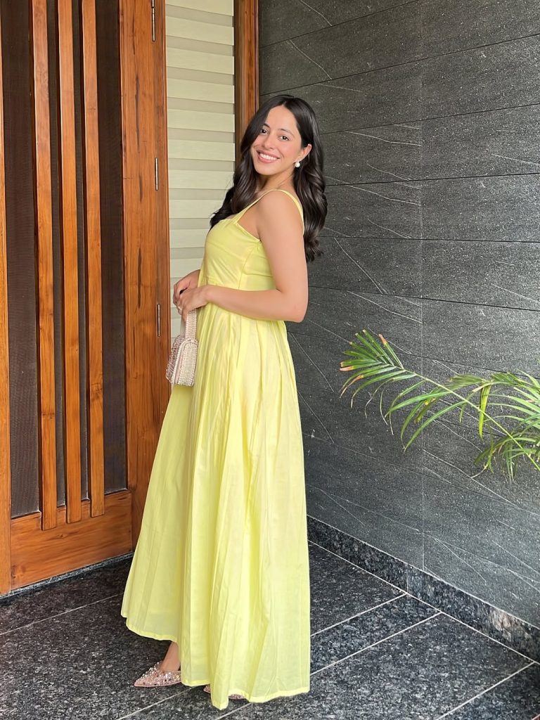 This light yellow maxi dress captures the easy elegance of a sunny day. With its breezy fabric and delicate straps, it brings a soft glow to any occasion. The gentle color feels refreshing and uplifting—perfect for summer brunches or casual garden parties where you want to look radiant without trying too hard.