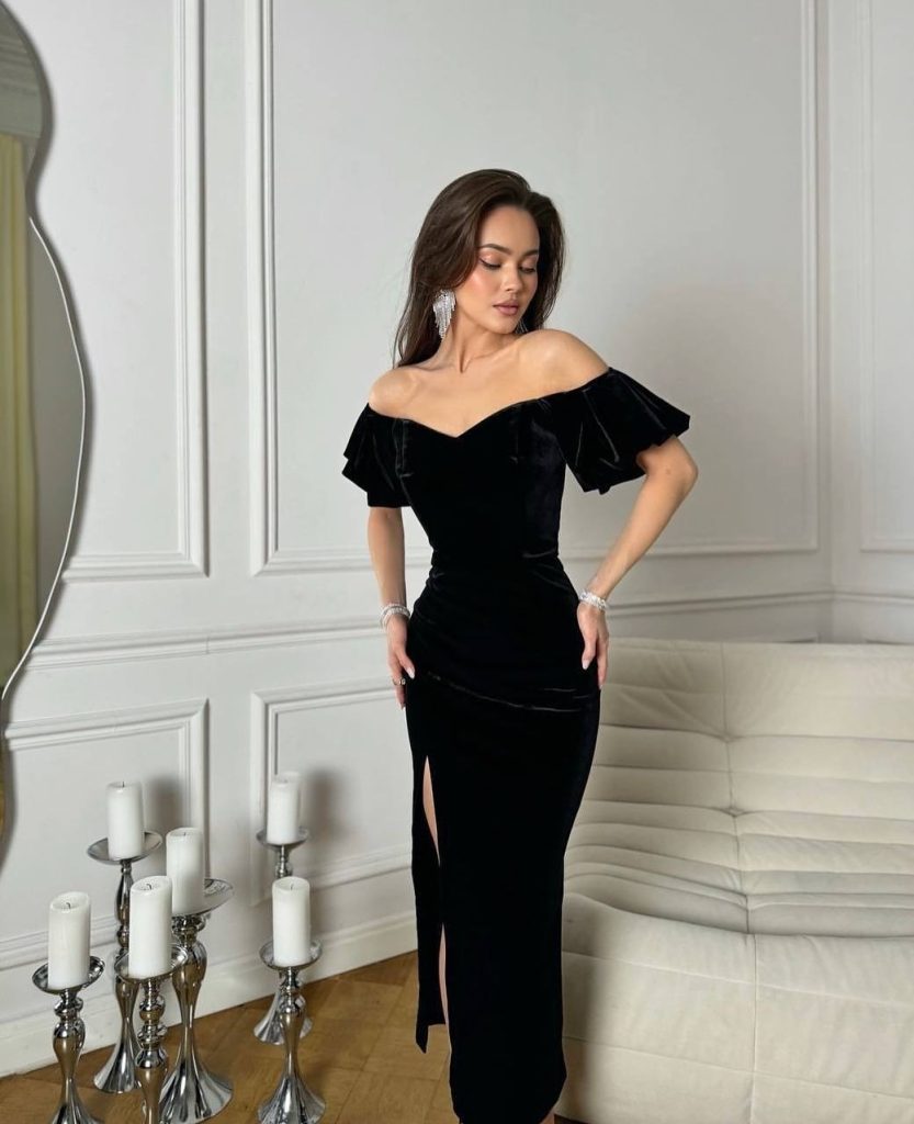 There’s something irresistible about the way a black velvet maxi dress catches the light—soft, dramatic, and endlessly elegant. The sweetheart neckline and flutter sleeves bring a romantic edge, while the side slit keeps it alluring without overdoing it. It’s the kind of look that turns heads at evening events without saying a word.