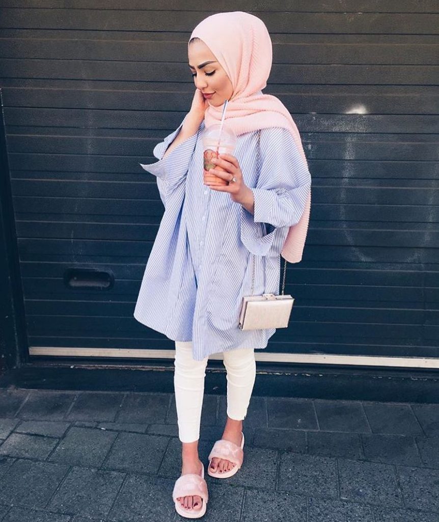 - Printed Hijab in coordinated pastel tones