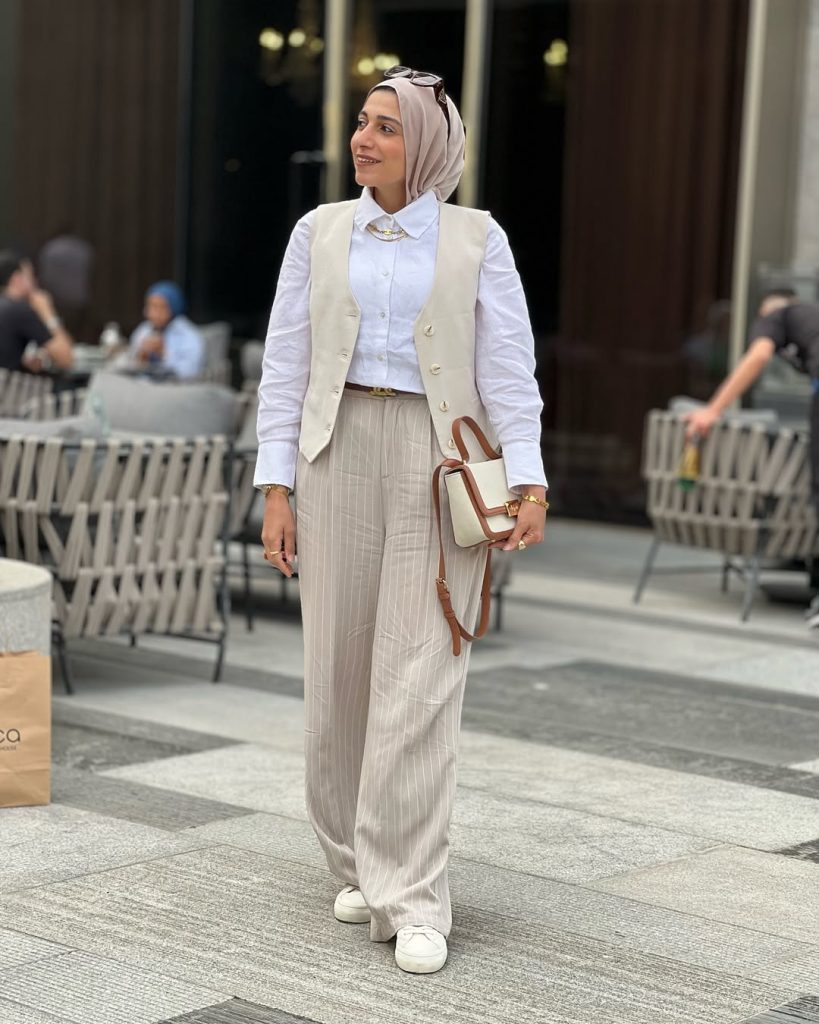 This outfit is ideal for various occasions such as coffee dates, casual meetings, or city strolls. This look is a strong example of a semi-casual, modest style that works across settings. Add a watch or gold jewelry for warmth. Avoid oversized bags—the outfit benefits from clean proportions and calm balance.