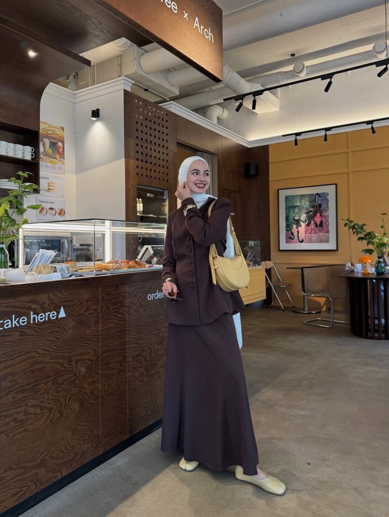 This outfit is ideal for various occasions, such as workdays, lunches, or smart semi-casual settings. This outfit is a strong example of classy, modest dressing for women who want confidence without stiffness. Add gold jewelry for warmth. Avoid bulky shoes—sleek footwear keeps the lines clean and elegant.
