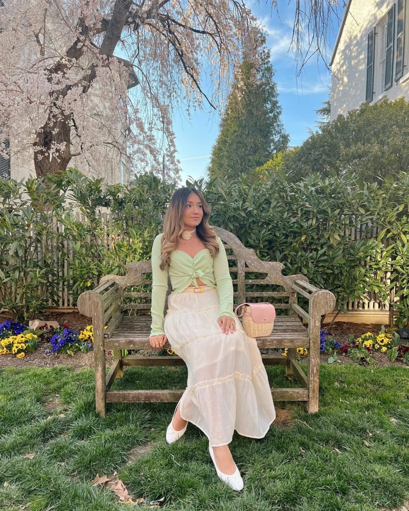This outfit suits brunch dates, spring walks, or relaxed social events. It’s a beautiful example of Ideas aesthetic styling that feels fresh yet timeless. Add delicate earrings for personality. Avoid heavy footwear—light shoes keep the look balanced and elegant.