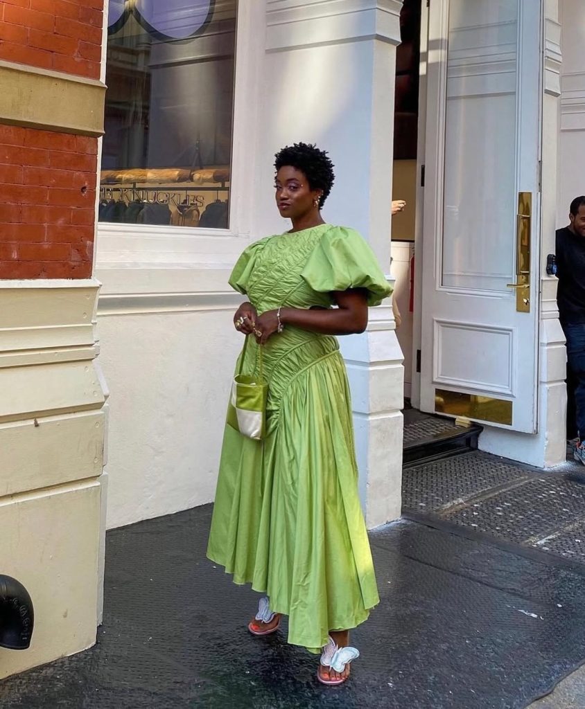 These sandals are perfect for events such as gallery visits, special lunches, or fashion-forward gatherings. This look especially shines on Black women, celebrating color and form with confidence. Let the dress remain the focal point—avoid heavy layering. It’s a standout example of Ideas’ aesthetic dressing that feels editorial yet wearable.